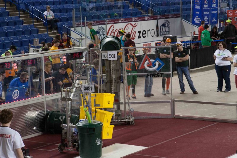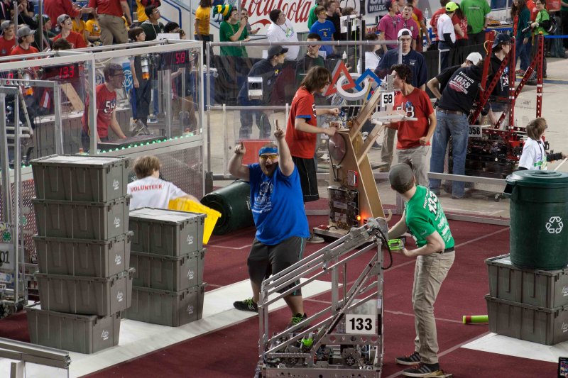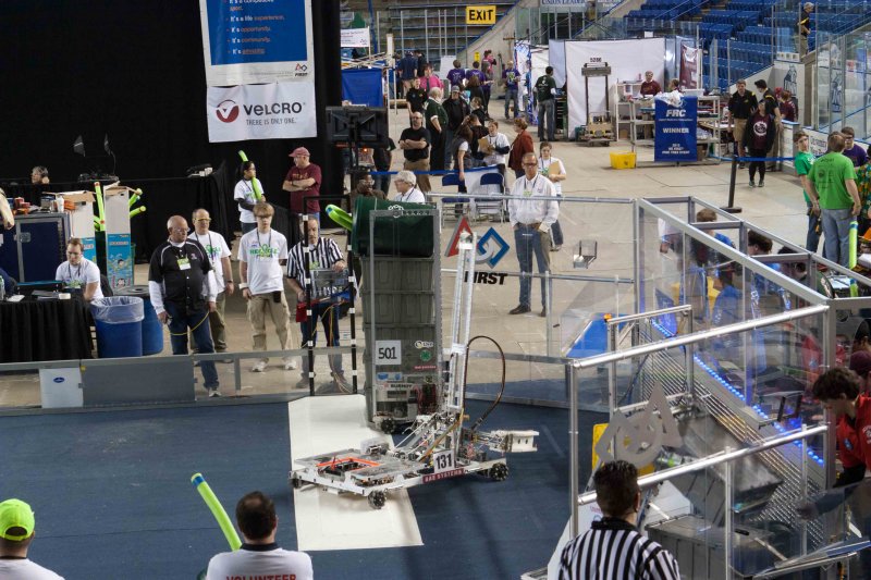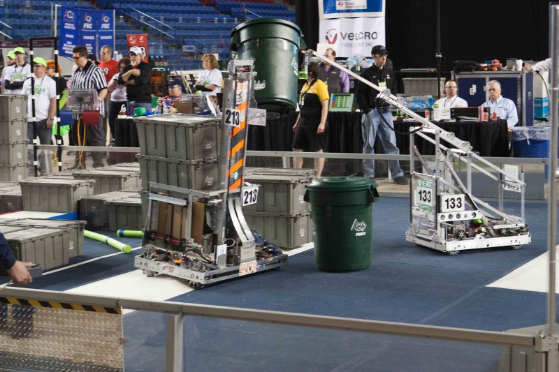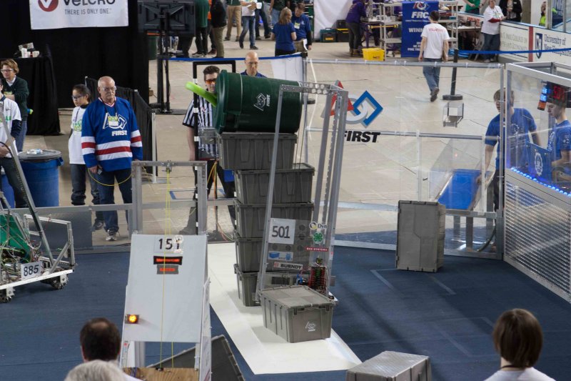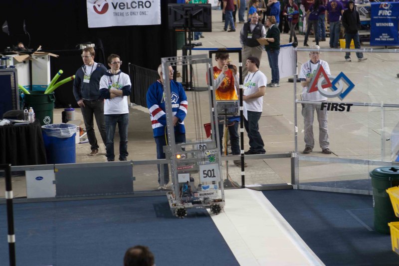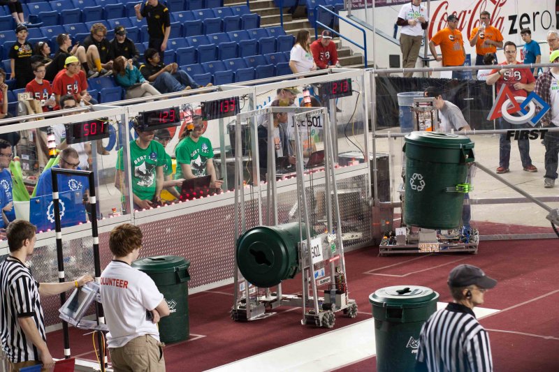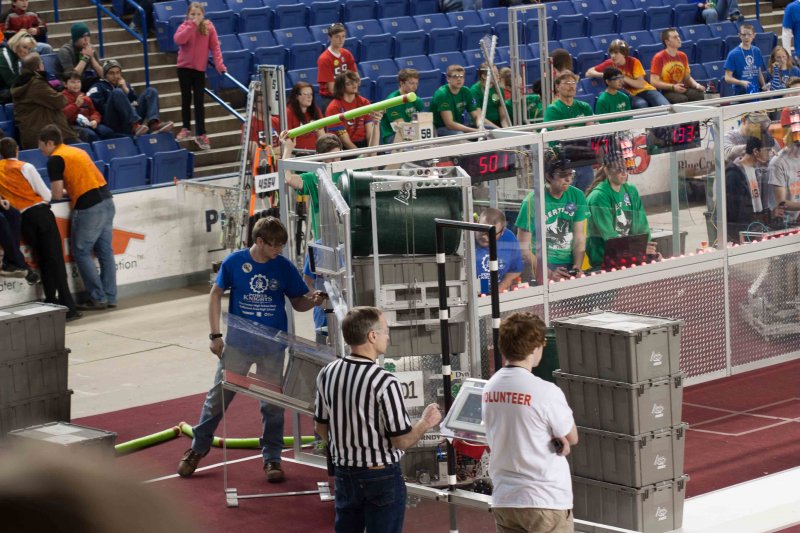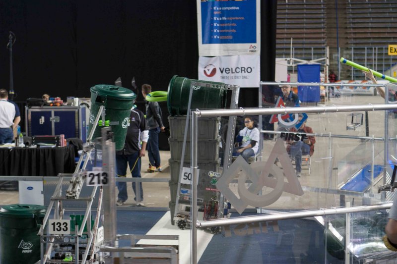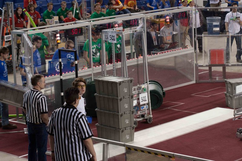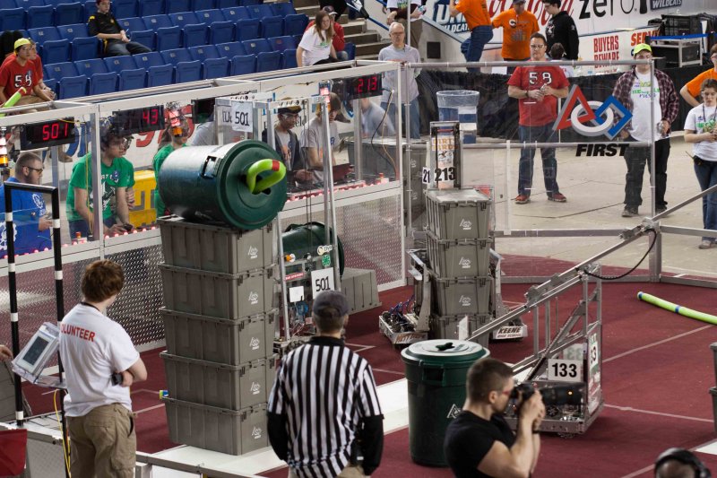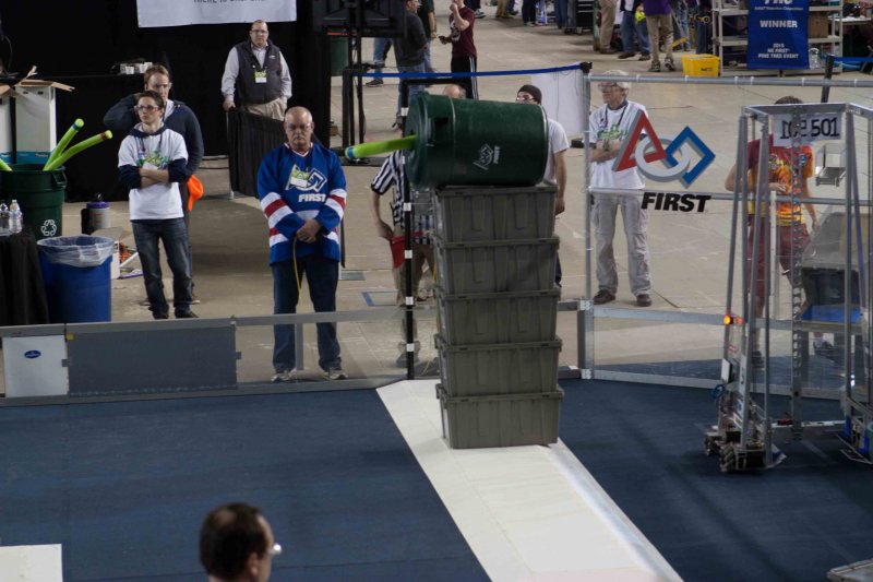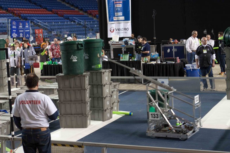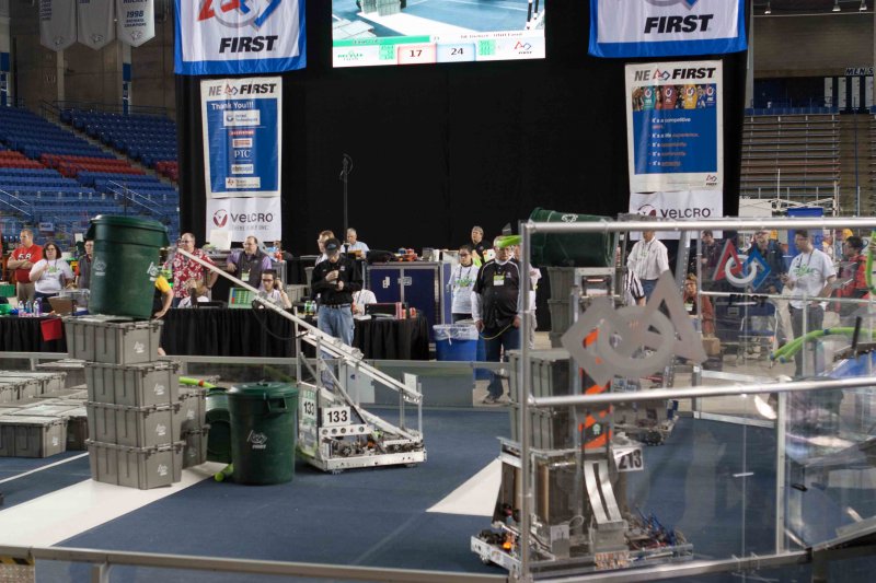 Much like Superbowl 47 in 2013, the lights went out half way through the first match, and the match was re-run. During the replay, a player’s ID button came off and prevented the legal scoring of a large number of points, something which may have never occurred before in FIRST’s 24 year history.