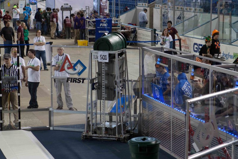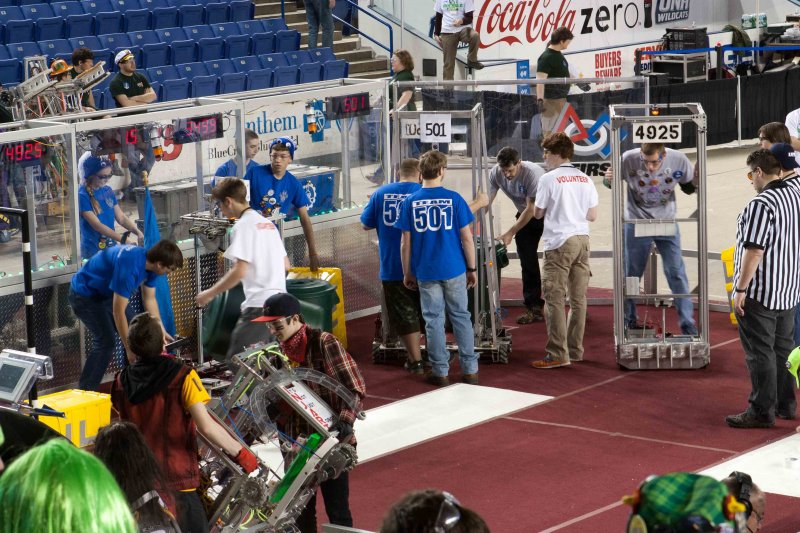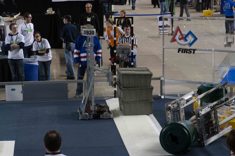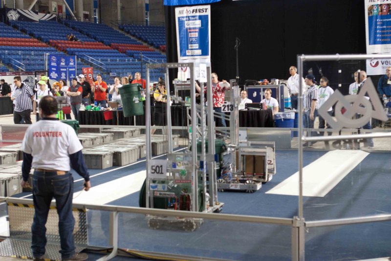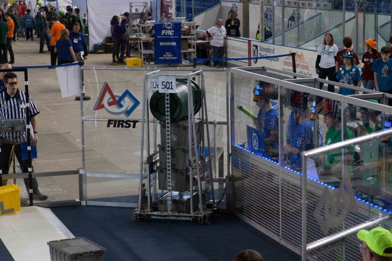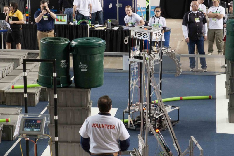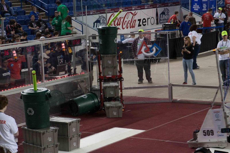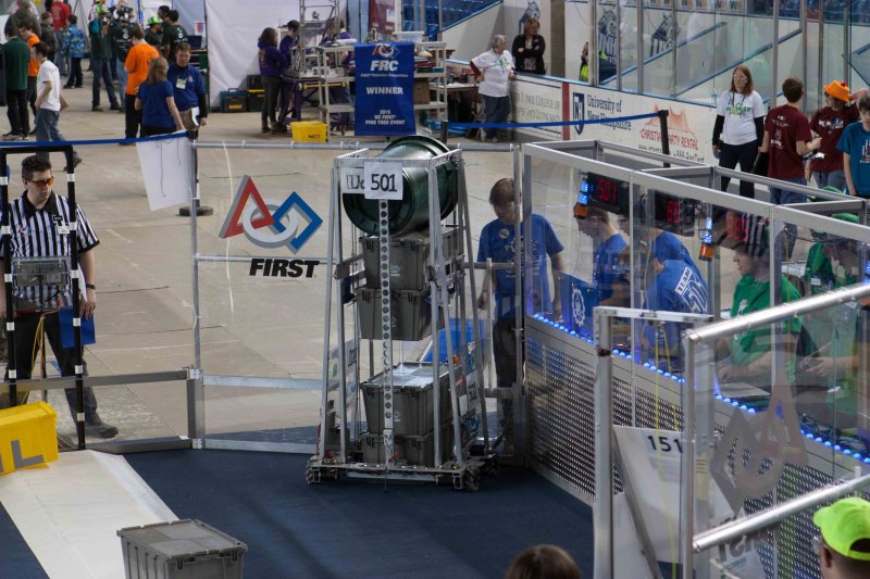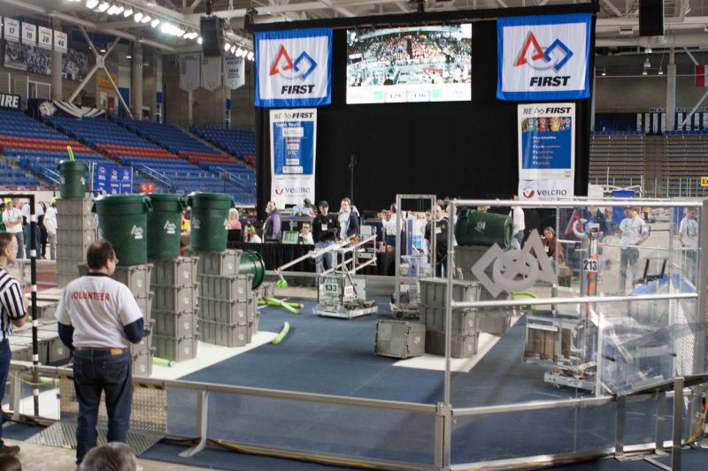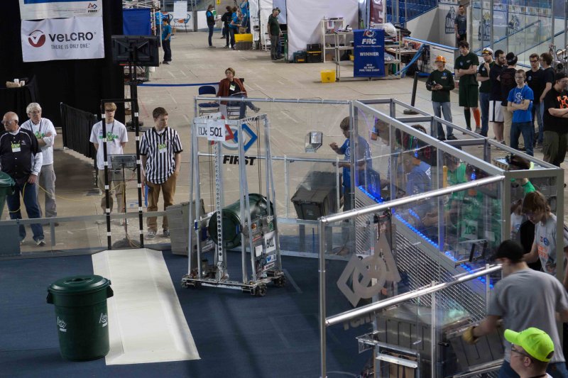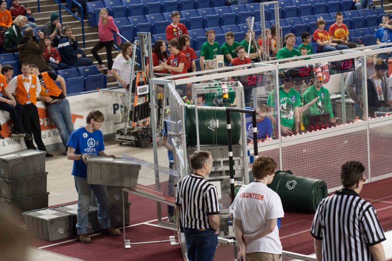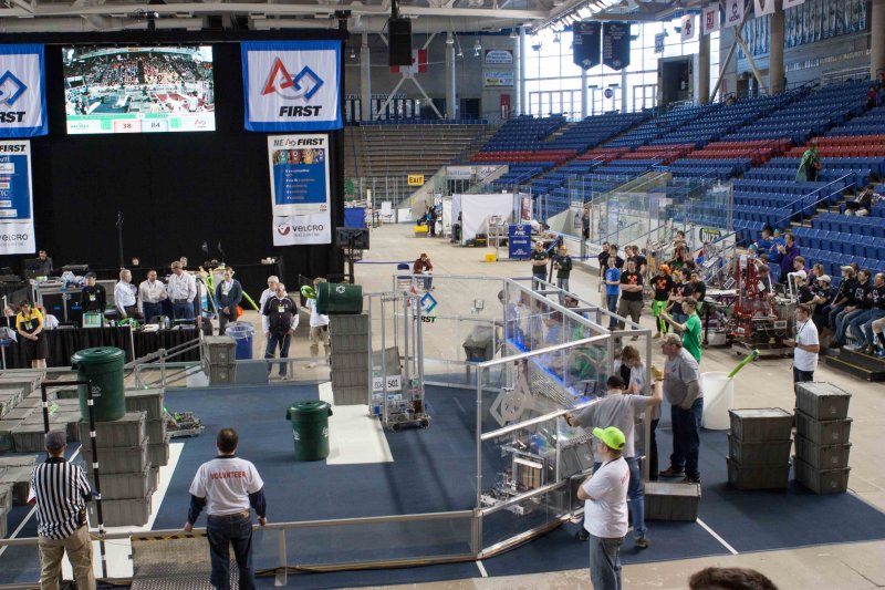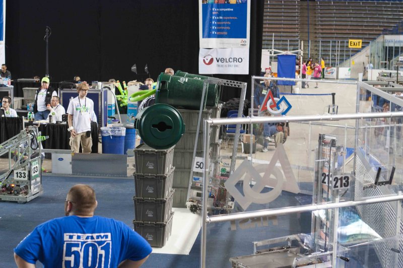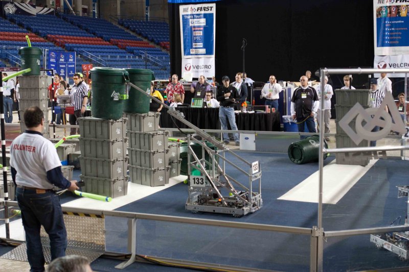 Much like Superbowl 47 in 2013, the lights went out half way through the first match, and the match was re-run. During the replay, a player’s ID button came off and prevented the legal scoring of a large number of points, something which may have never occurred before in FIRST’s 24 year history.