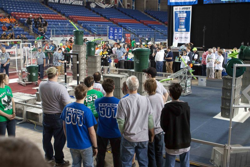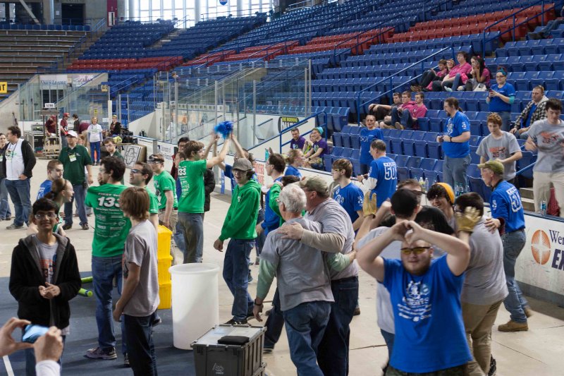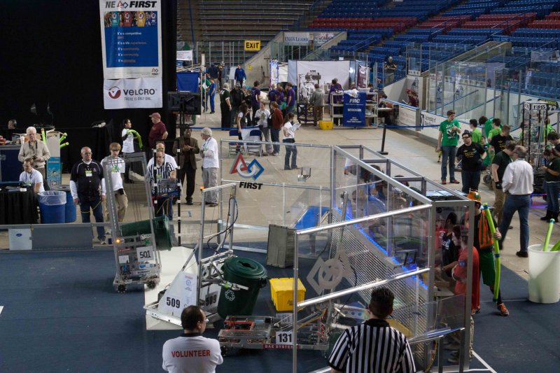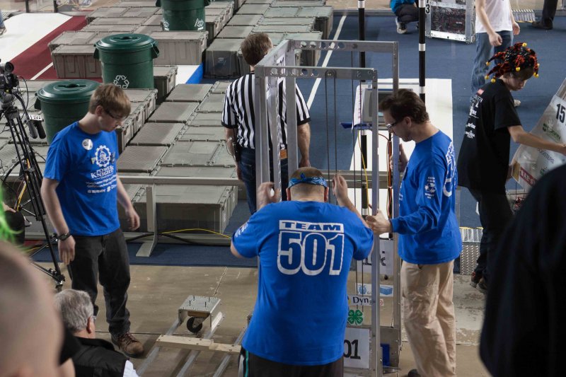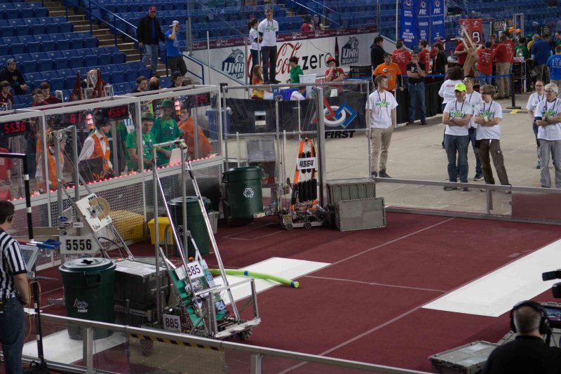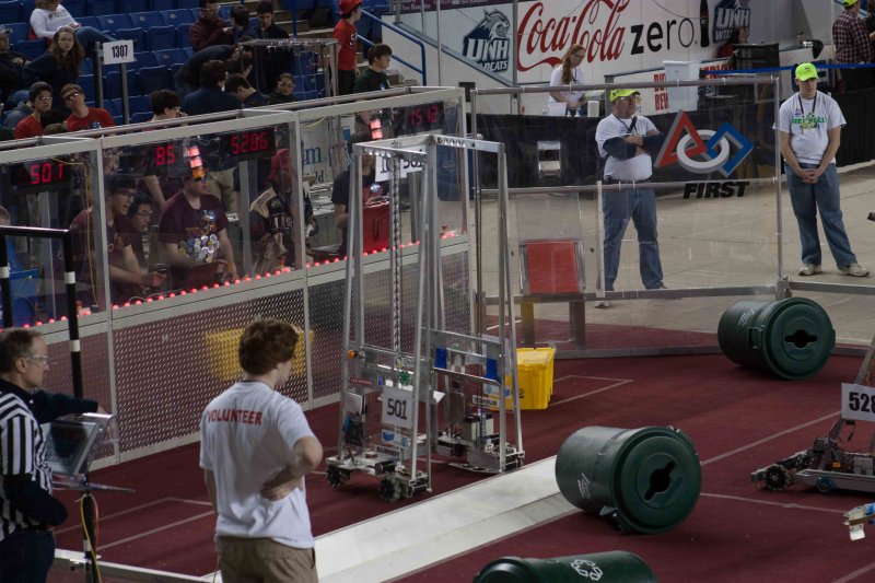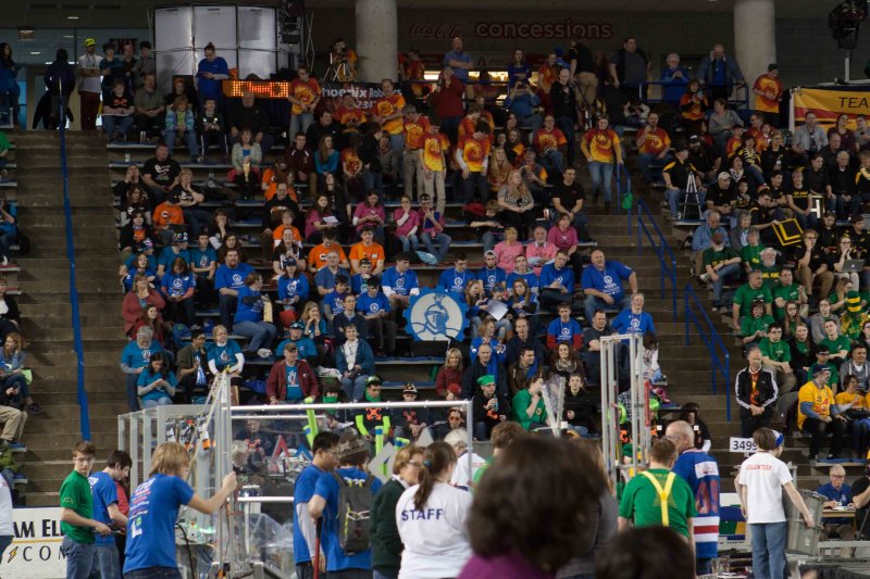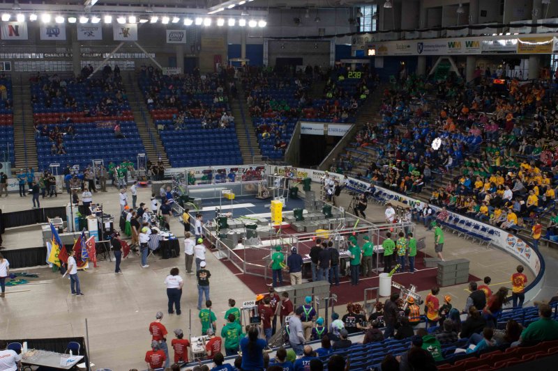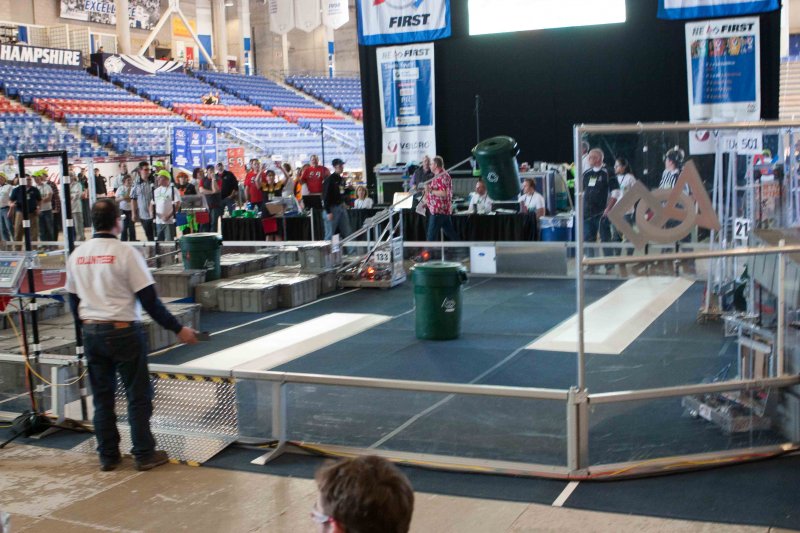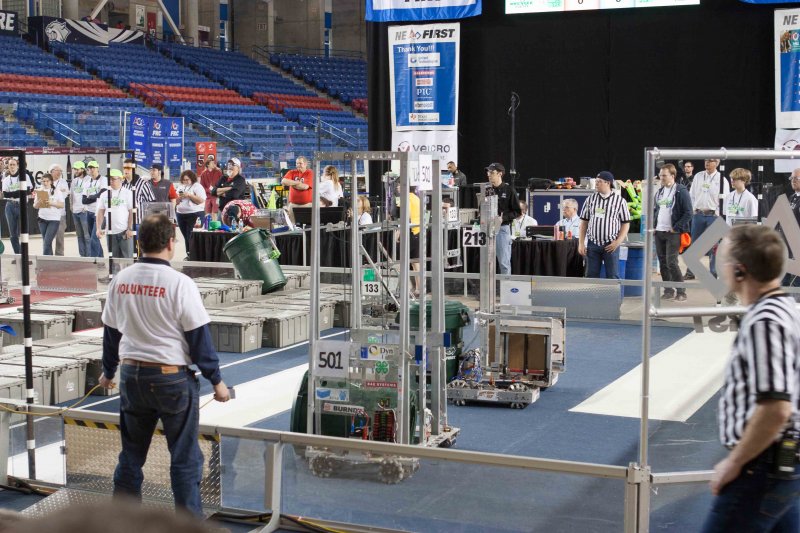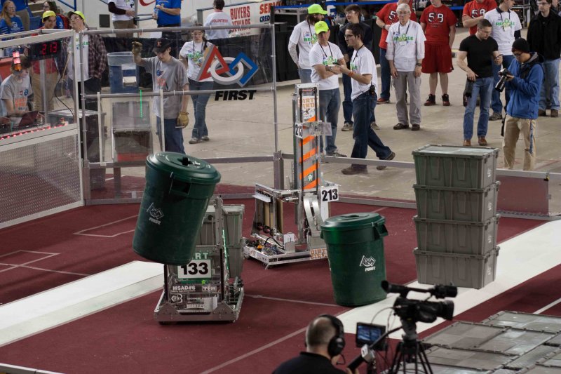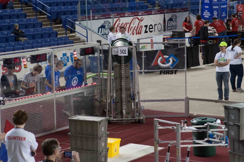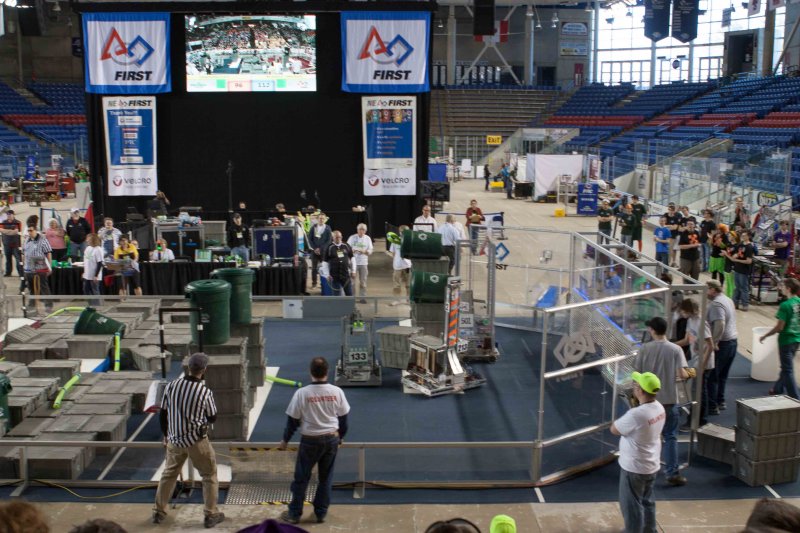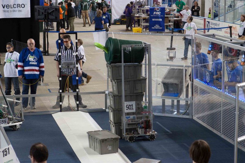 Much like Superbowl 47 in 2013, the lights went out half way through the first match, and the match was re-run. During the replay, a player’s ID button came off and prevented the legal scoring of a large number of points, something which may have never occurred before in FIRST’s 24 year history.