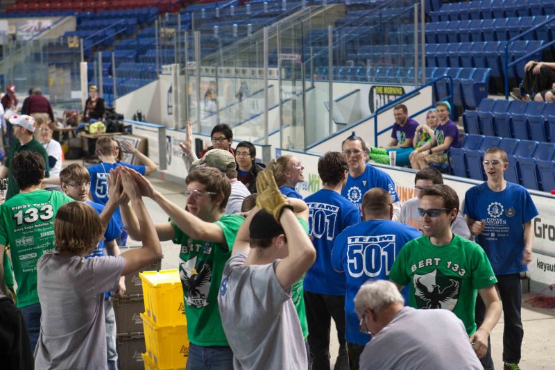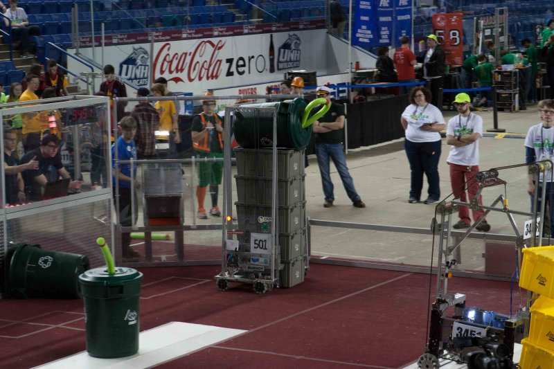 We ended qualification matches ranked 33 out of 40. The qualification ranking system severely undervalued our team. Along with the 9th seed and 30th seed, we formed the 6th alliance and advanced through the quarterfinals and the semifinals.